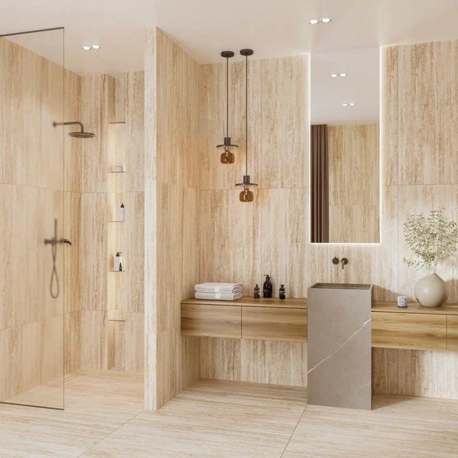 Керамогранит 120x60 Latin TRAVERTINE CREMA SHAPETOUCH матовая, структурированная бежевый Belleza