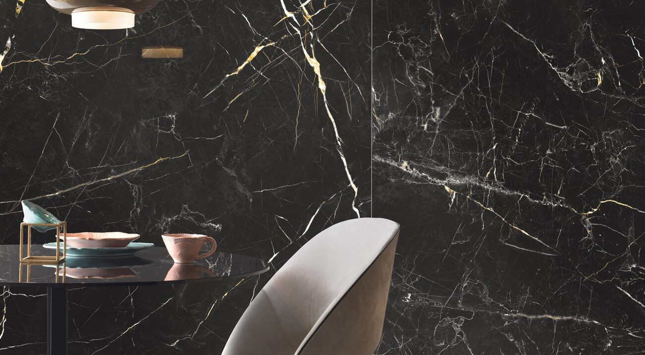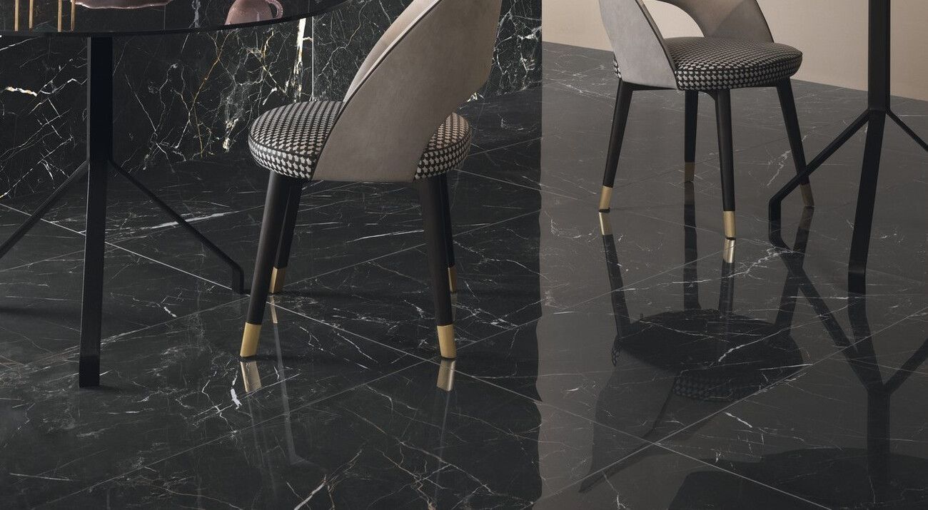 Плитка Keope Ceramiche 120x60 Elements Lux Port Laurent 60X120Nat 25A2 черный мрамор 9мм