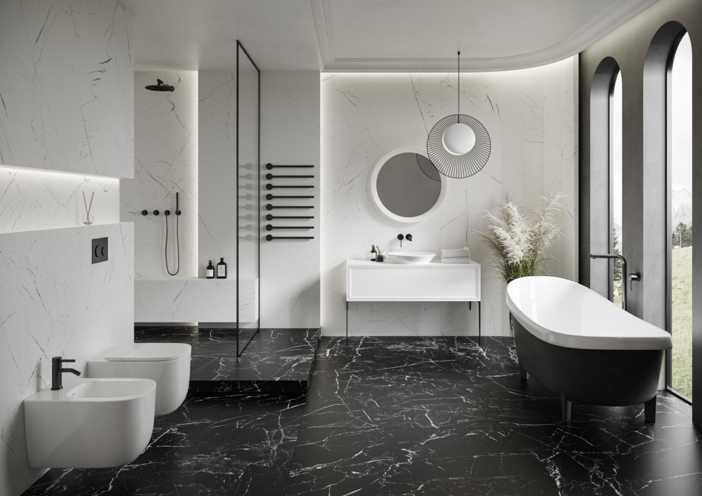 Керамогранит настенная 119x59 8мм Marmo Morocco Black Rect матовая Cerrad
