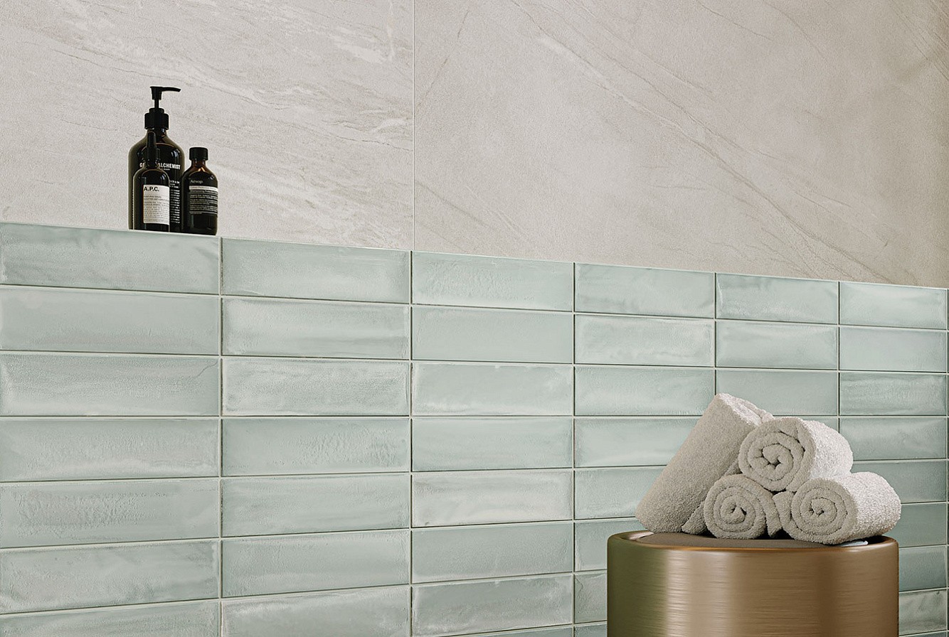 Плитка 30x8 Forte Dei Marmi Rock Acqua Brick Madreperla 600010001811 матовая голубой однотонная Атлас Конкорд