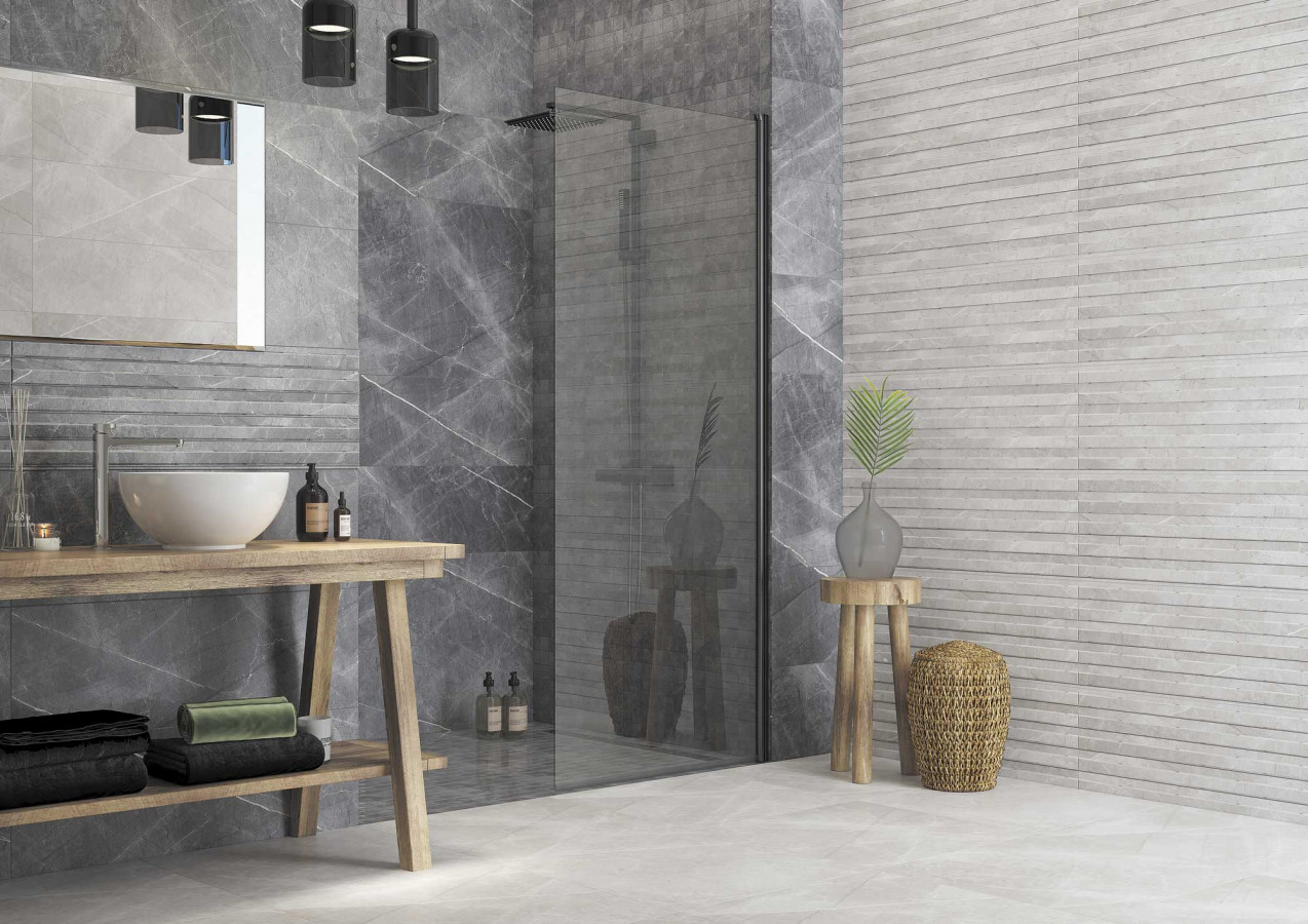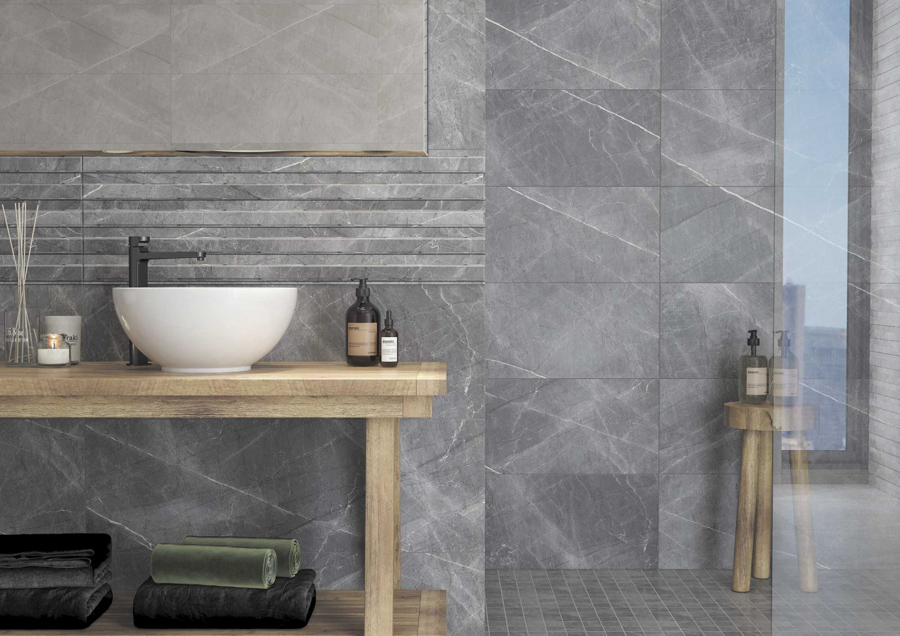 Плитка 90x30 Канон настенная 7С серый матовая белый бежевый Керамин
