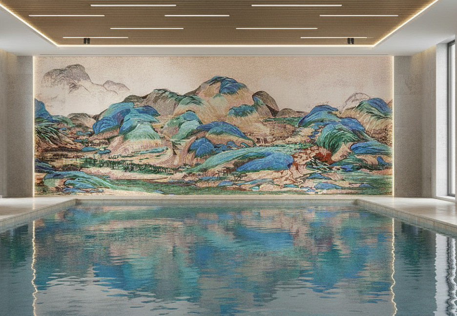 Панно - 1200x268 Размер: 1 См Стеклянная Мозаика Горы И Воды На Тысячу Ли бежевый Art Natura