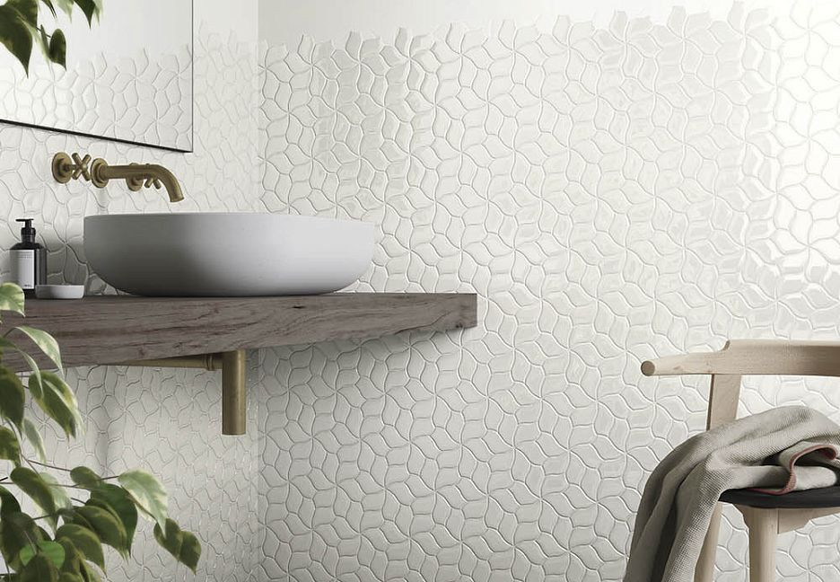 Керамогранит 40x23 Flower Универсальный Глазурованный Цвет:white Matt Botanica матовая белый мозаика Mutina