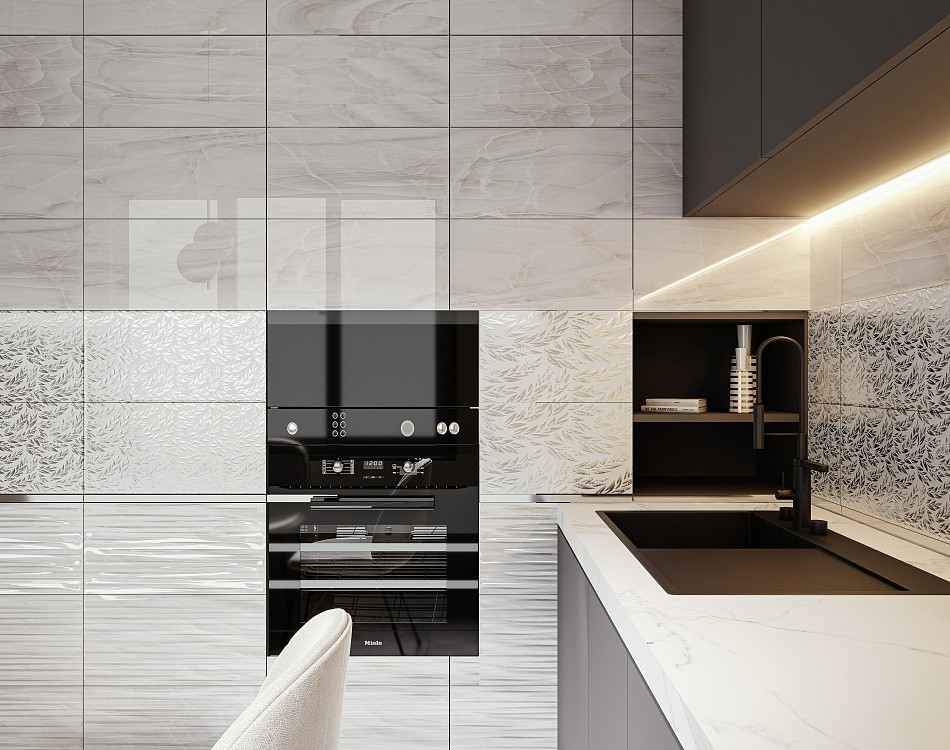 Плитка 50x25 Палермо настенная светлая рельеф глянцевая белый Axima