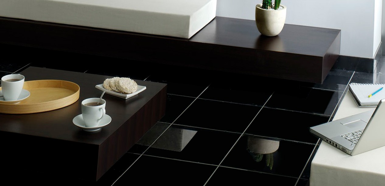 Керамогранит универсальная 60x60 8мм черный неглазурованный глянцевая Realistik