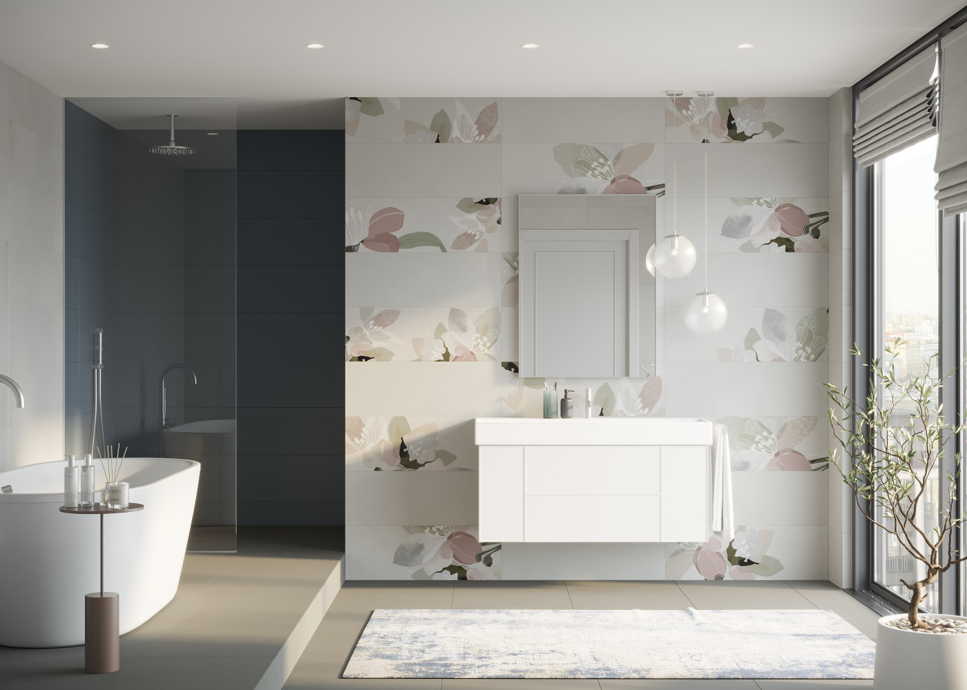 Плитка 90x30 Vogue Flowers матовая серый 10мм Creto