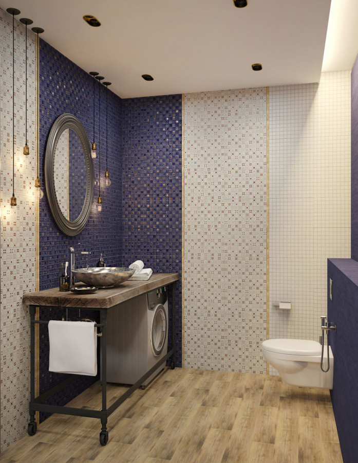 Плитка 40x28 Калипсо настенная с антибактериальным покрытием 2 синий матовая Керамин