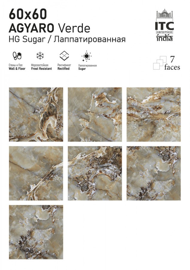Плитка ITC India универсальная (напольная и настенная) 60x60 Керамогранит AGYARO Verde HG Sugar
