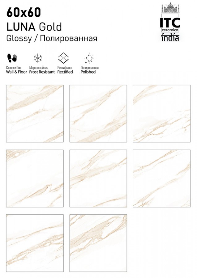 Плитка ITC India универсальная (напольная и настенная) 60x60 Керамогранит LUNA Gold Glossy