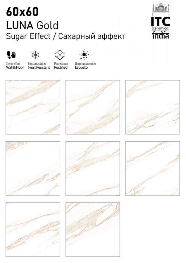 Плитка ITC India универсальная (напольная и настенная) 60x60 Керамогранит LUNA Gold Sugar