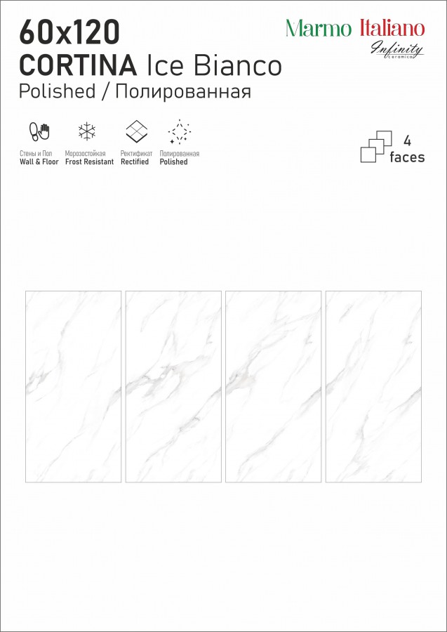 Плитка Infinity Ceramica универсальная (напольная и настенная) 120x60 Керамогранит CORTINA Florida Ice Bianco Polished