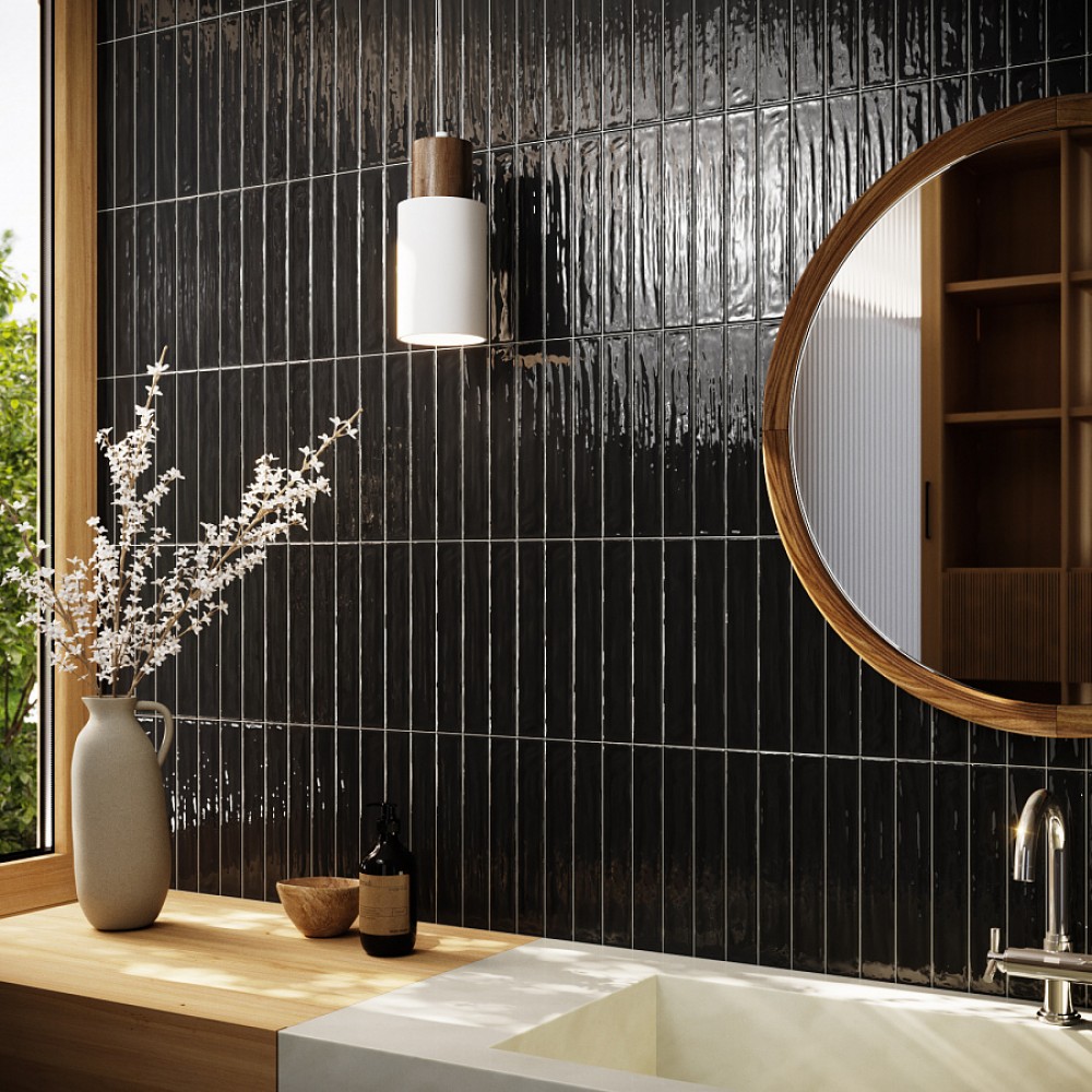 Керамическая плитка Vilar Albaro Ava black глянцевая черный 30x5