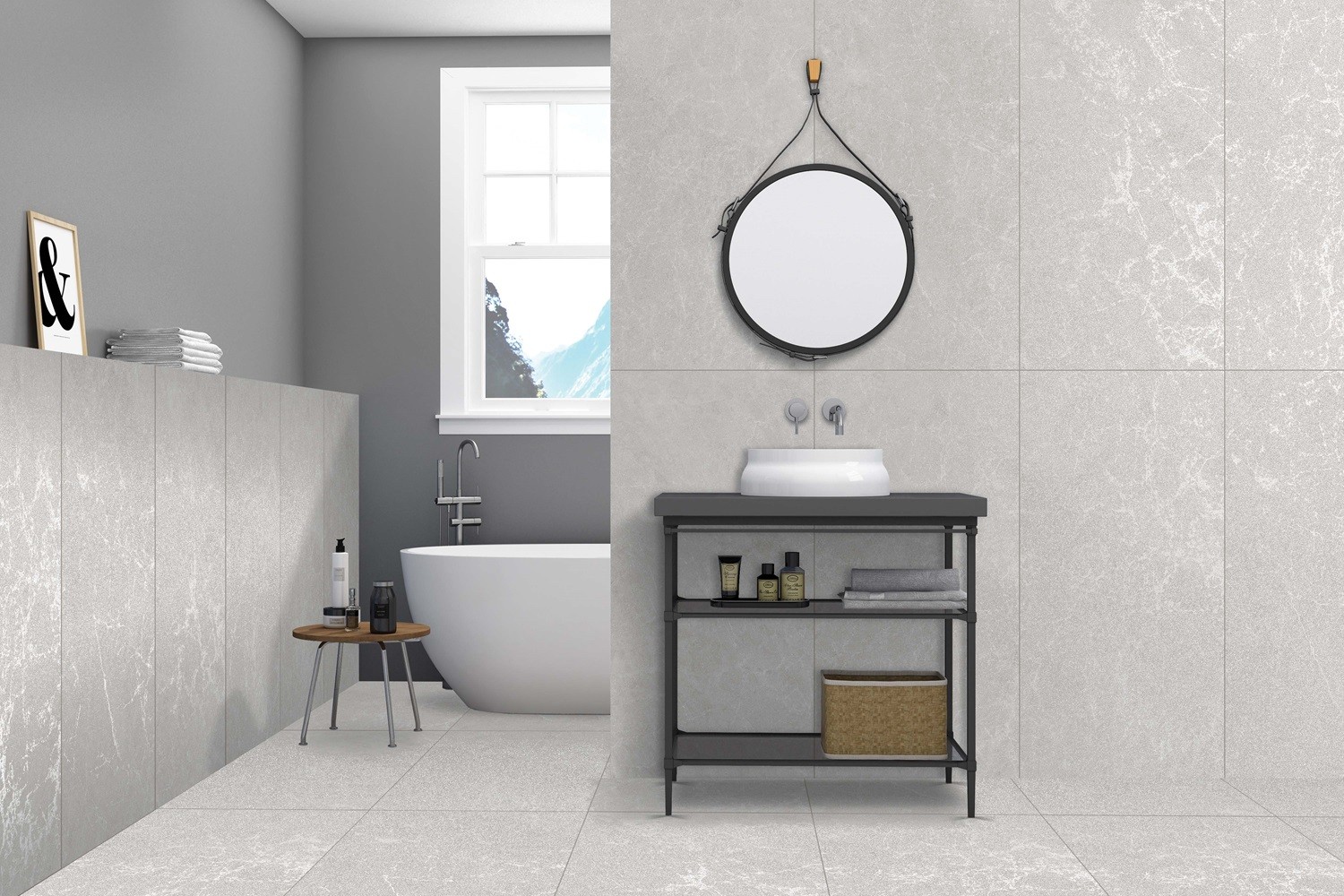 Керамогранит настенная 120x60 9мм Мэдисон серый сахарный карвинг матовая Realistik