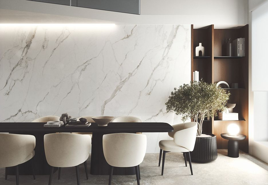 Керамогранит 275x100 4D White/100X275/pst Premium Polished Stellar Lumiere полированная белый мрамор 7мм Museum