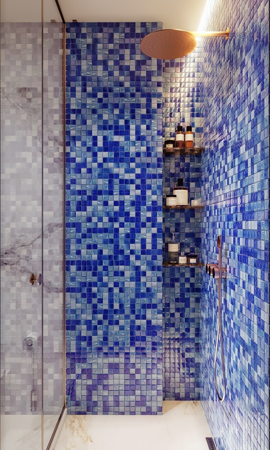 Мозаика 30x30 8мм Blu Drops 8*15*15 голубой Bonaparte