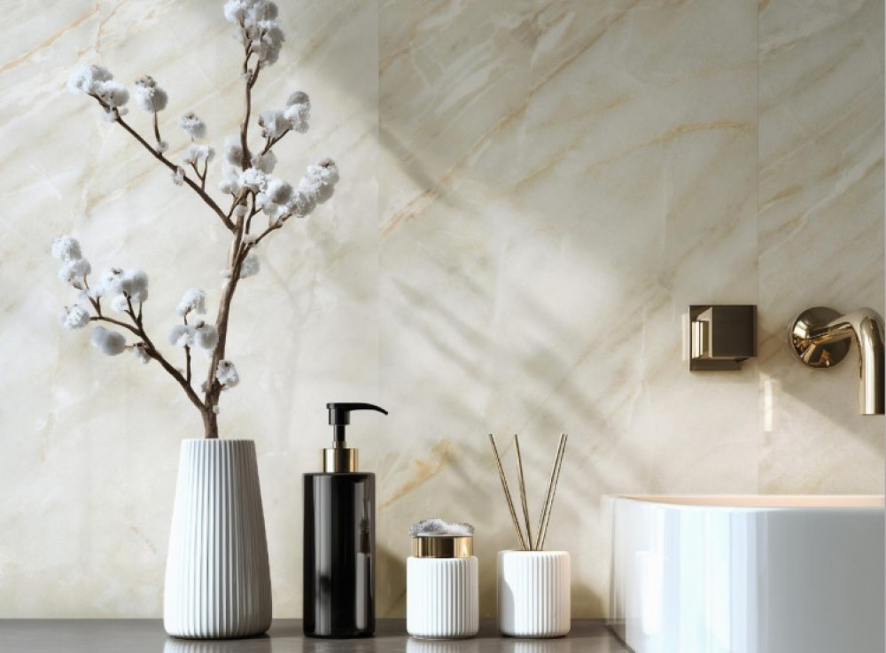 Керамогранит напольная 120x60 10мм Беж Глоу Кристалл радужный блеск глянцевая Realistik