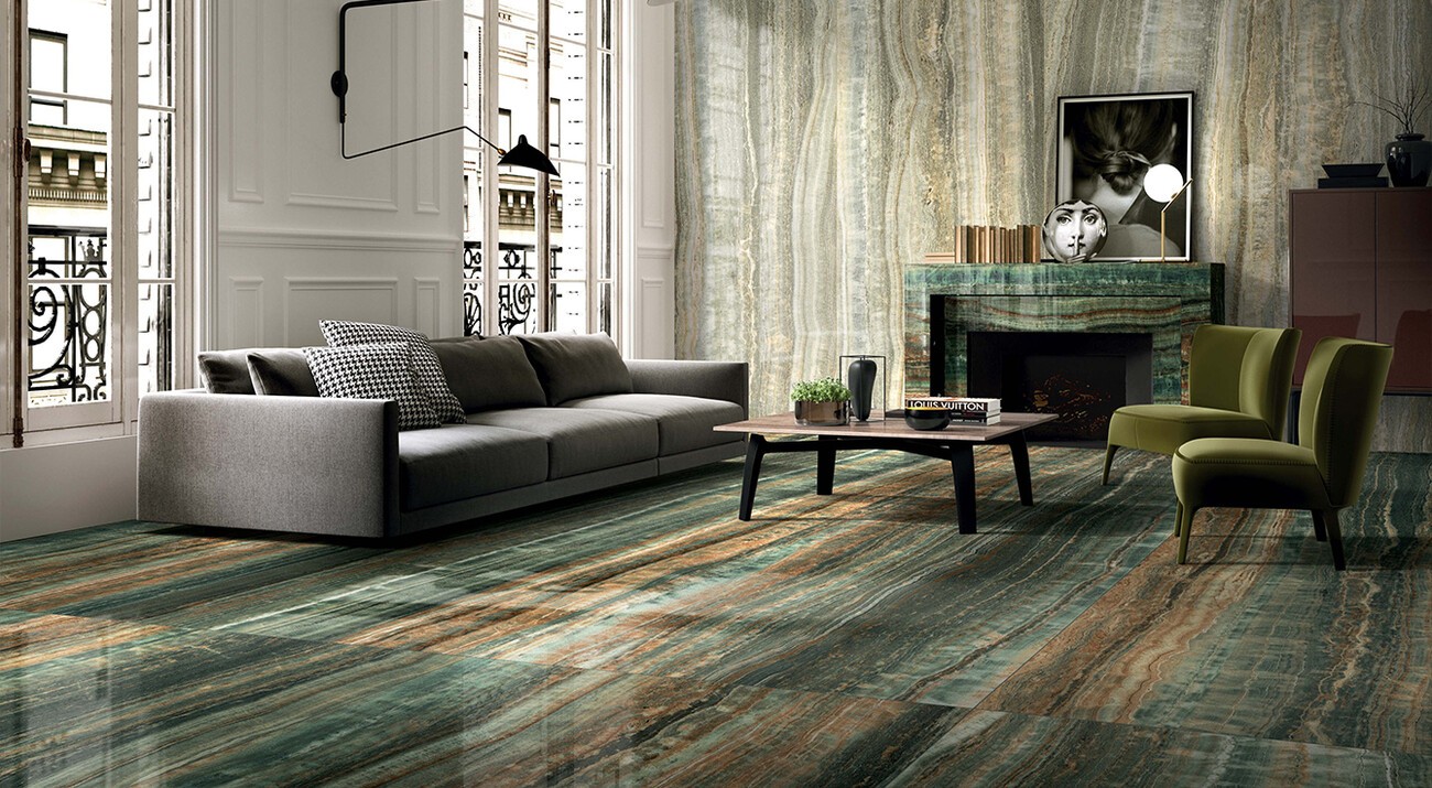 Плитка 120x60 Eccentric Luxe Mint Glossy Ret 778841 глянцевая мультиколор, зеленый камень, мрамор 9мм Rex Ceramiche