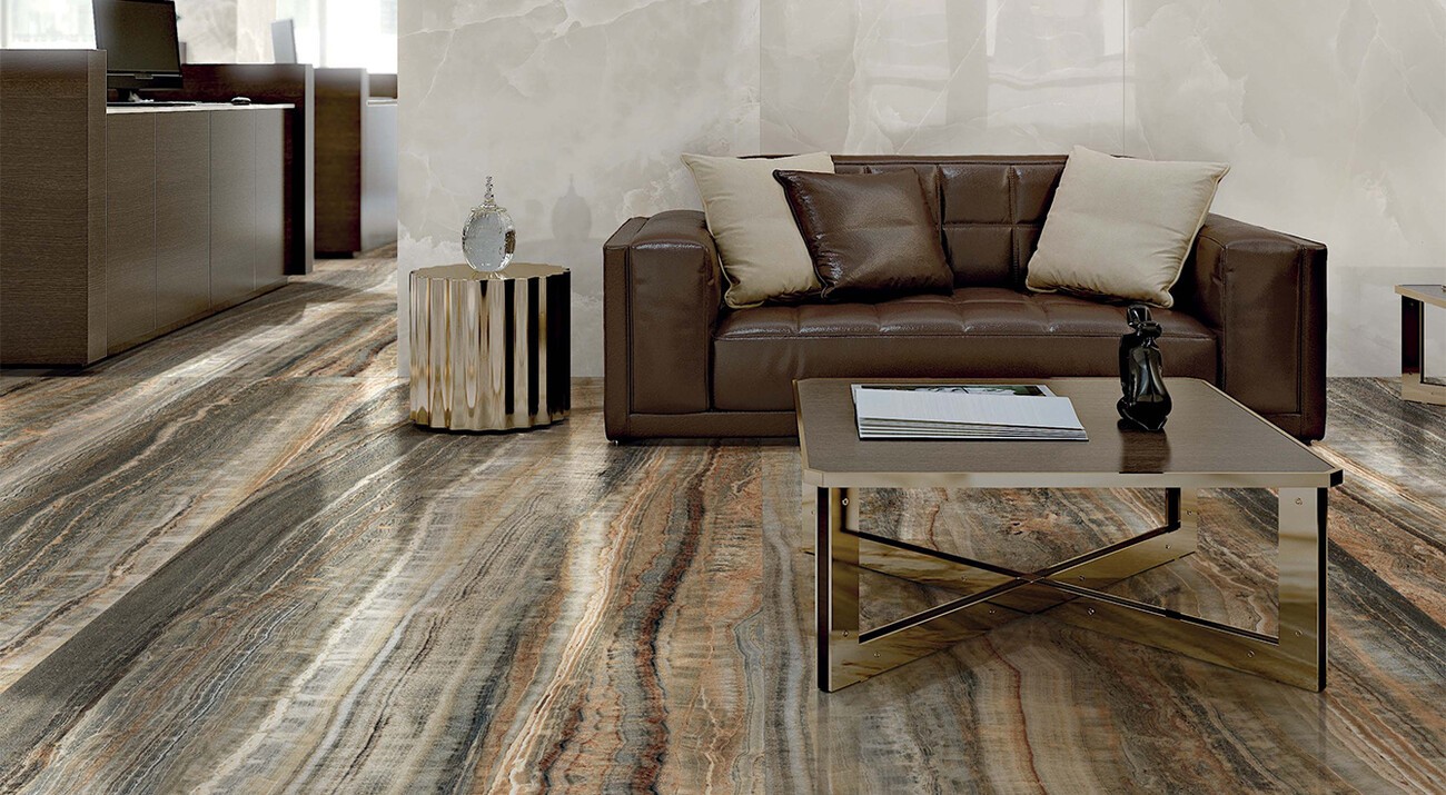 Плитка 120x60 Eccentric Luxe Caramel Comfort 60X120Ret 779268 матовая коричневый, мультиколор камень, мрамор 9мм Rex Ceramiche