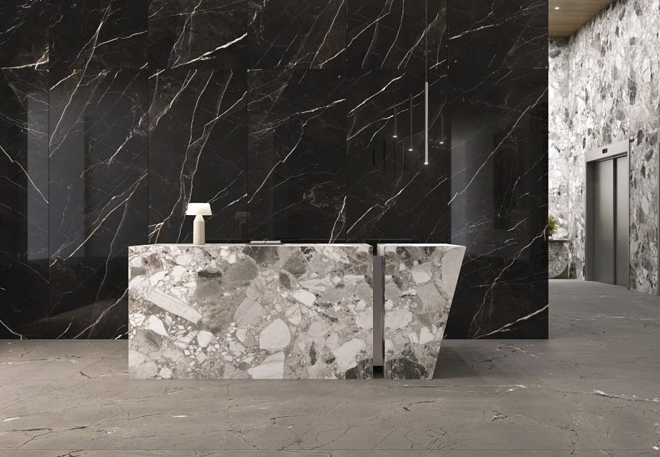 Керамогранит 275x100 4D Vulcano/100X275/Ps Premium Polished Sublime полированная черный мрамор 7мм Museum
