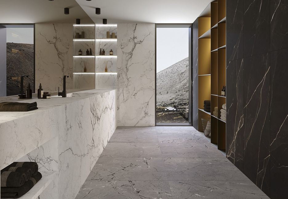 Керамогранит 275x100 4D Vulcano Sp/100X275/R Shaped Sublime матовая черный мрамор 6мм Museum