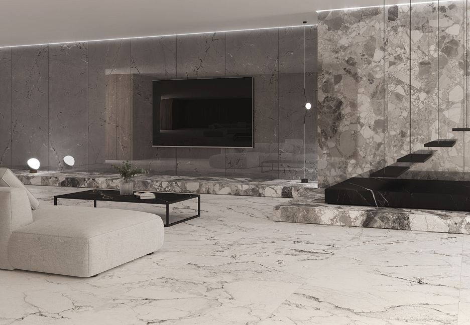 Керамогранит 275x100 4D Iceberg Sp/100X275/R Shaped Sublime матовая белый мрамор 6мм Museum