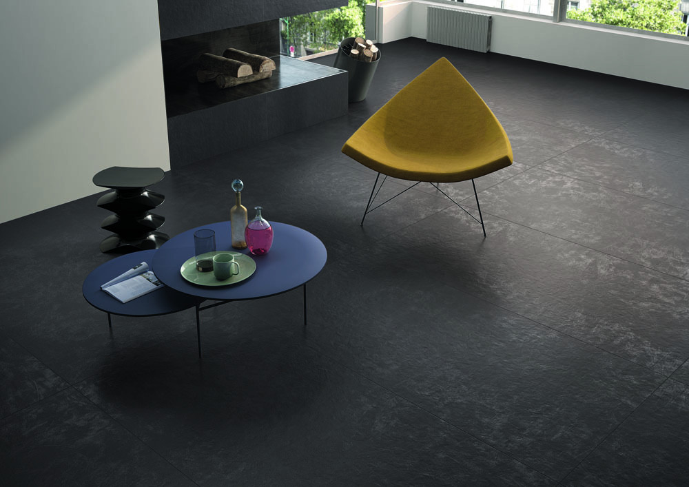 Керамогранит 90x45 Black Resina матовая, неполированная темный камень 10мм Casalgrande Padana