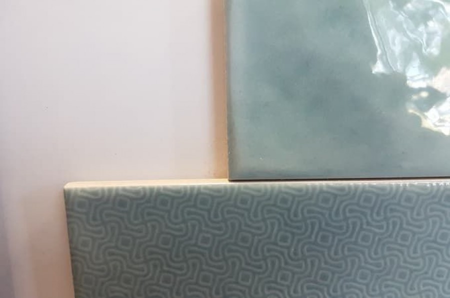 Плитка 30x8 настенная Opal Emerald гладкая + рельефная глянцевая зелено-синий Cifre