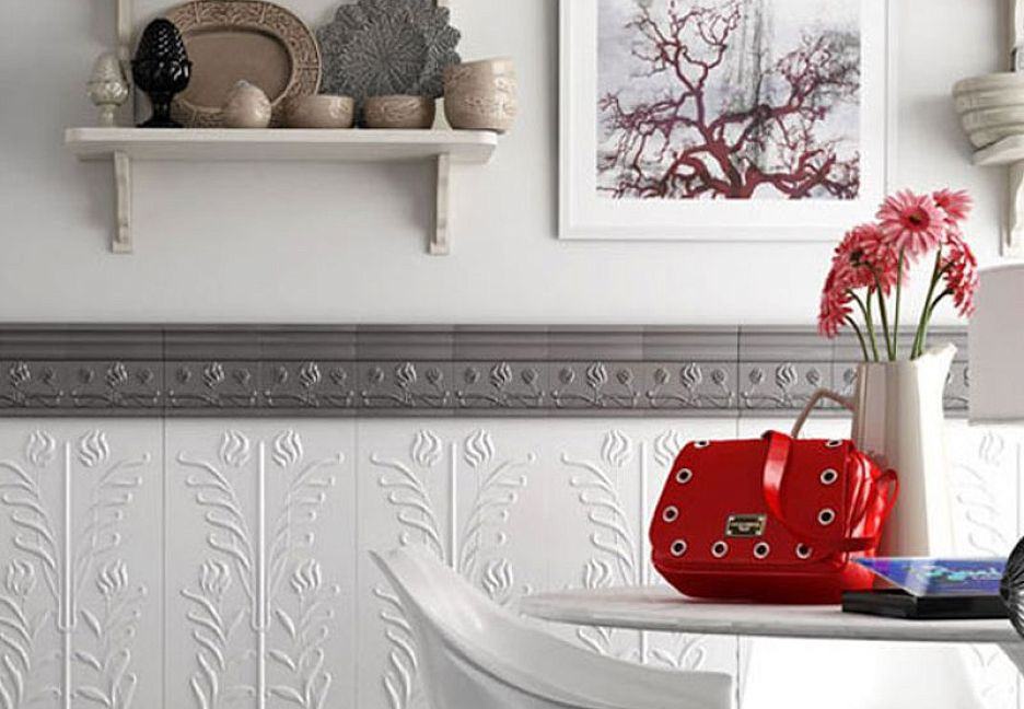 Плитка boiserie 80x20 05 Latte Luc Elena глянцевая белый орнамент Ladiva Сeramiche