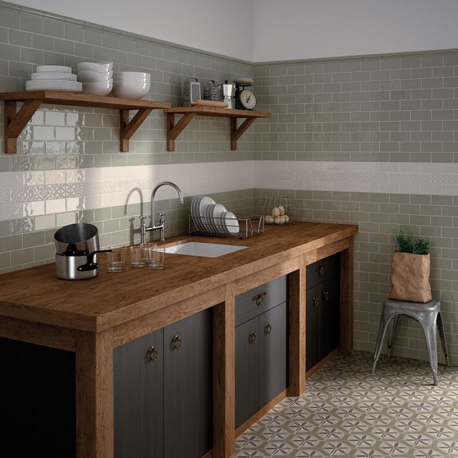 Плитка 30x10 Olive Luc Masia глянцевая зеленый однотонный Equipe