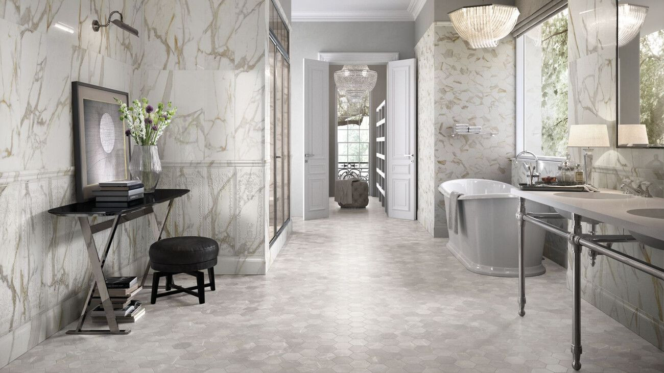 Плитка Италон 120x60 Charme Evo Calacatta Lux Rett 610015000403 глянцевая белый мрамор 9мм