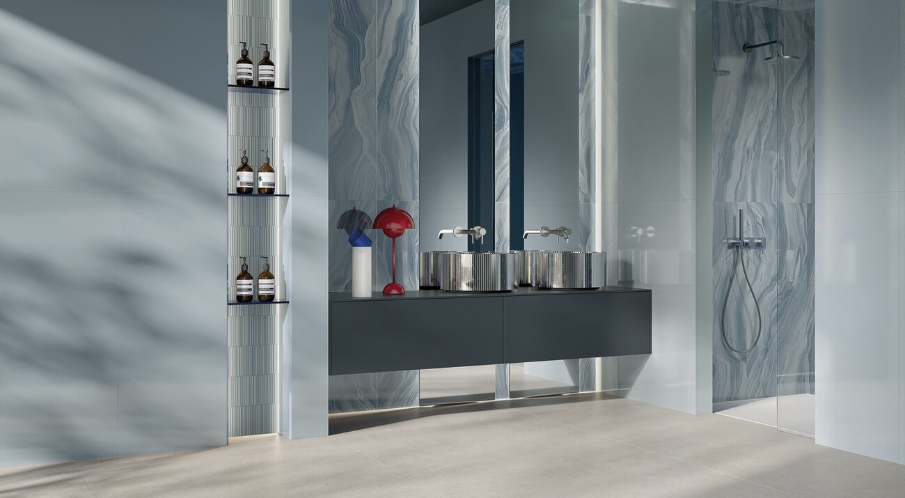 Плитка 120x50 Materia Brillante Riflessi Cielo Brillante Ftos синий краска, штукатурка, однотонная Fap Ceramiche