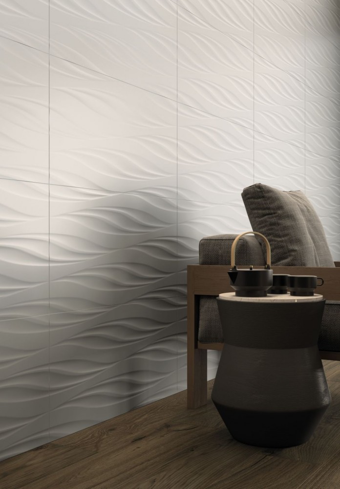 Плитка 80x40 3D Экспириенс Вэйв матовая белый 10мм Италон