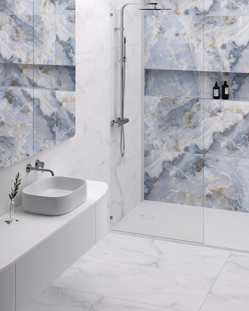 Керамогранит 120x60 9мм Lunarossa Statuario Mercury Satin сатинированная с карвингом Staro