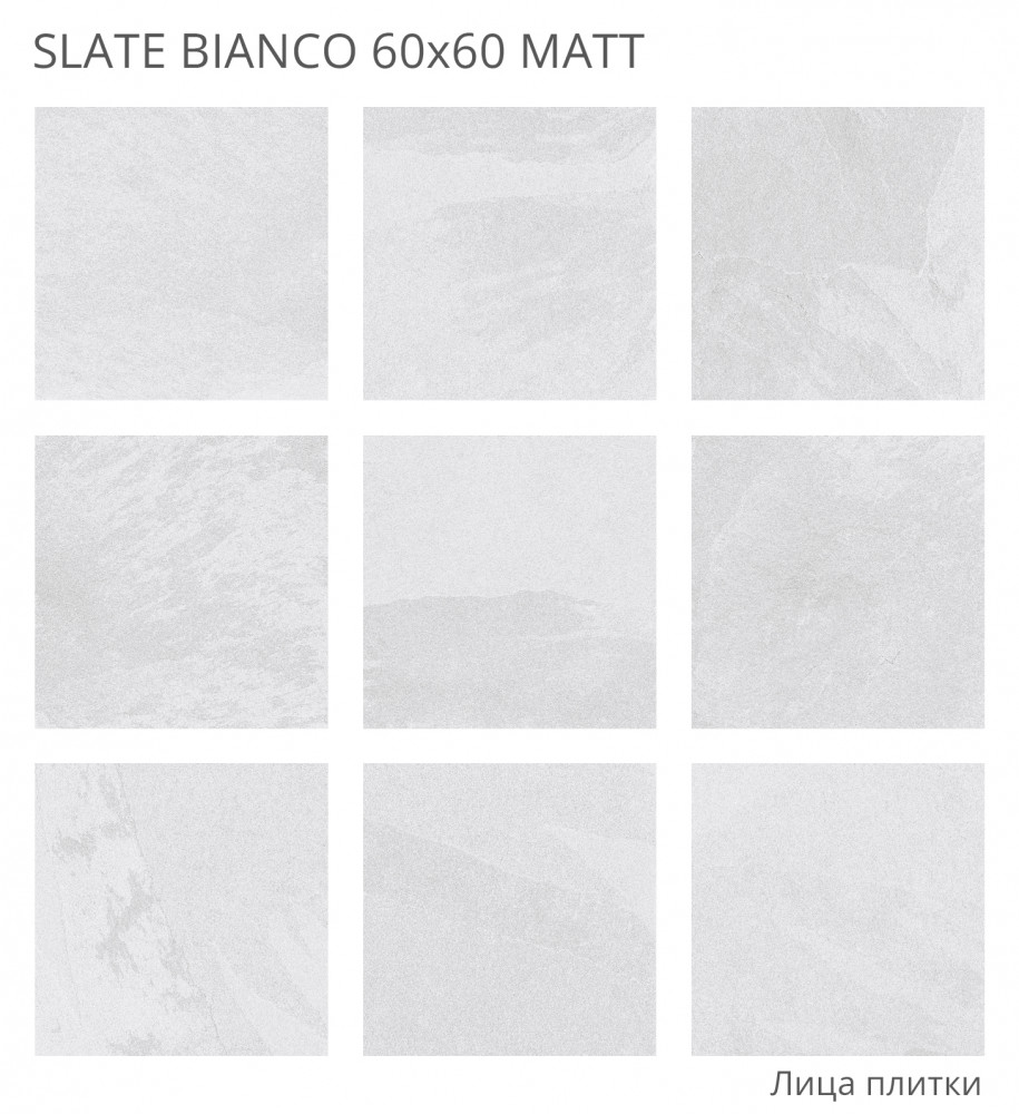 Керамогранит 60x60 8мм Rizzi Slate Bianco Matt матовая Staro