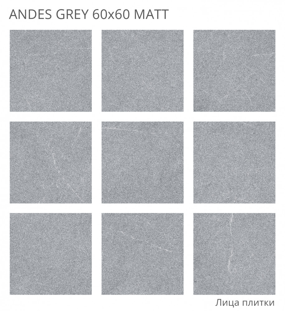 Керамогранит 60x60 8мм Rizzi Andes Grey Matt матовая Staro