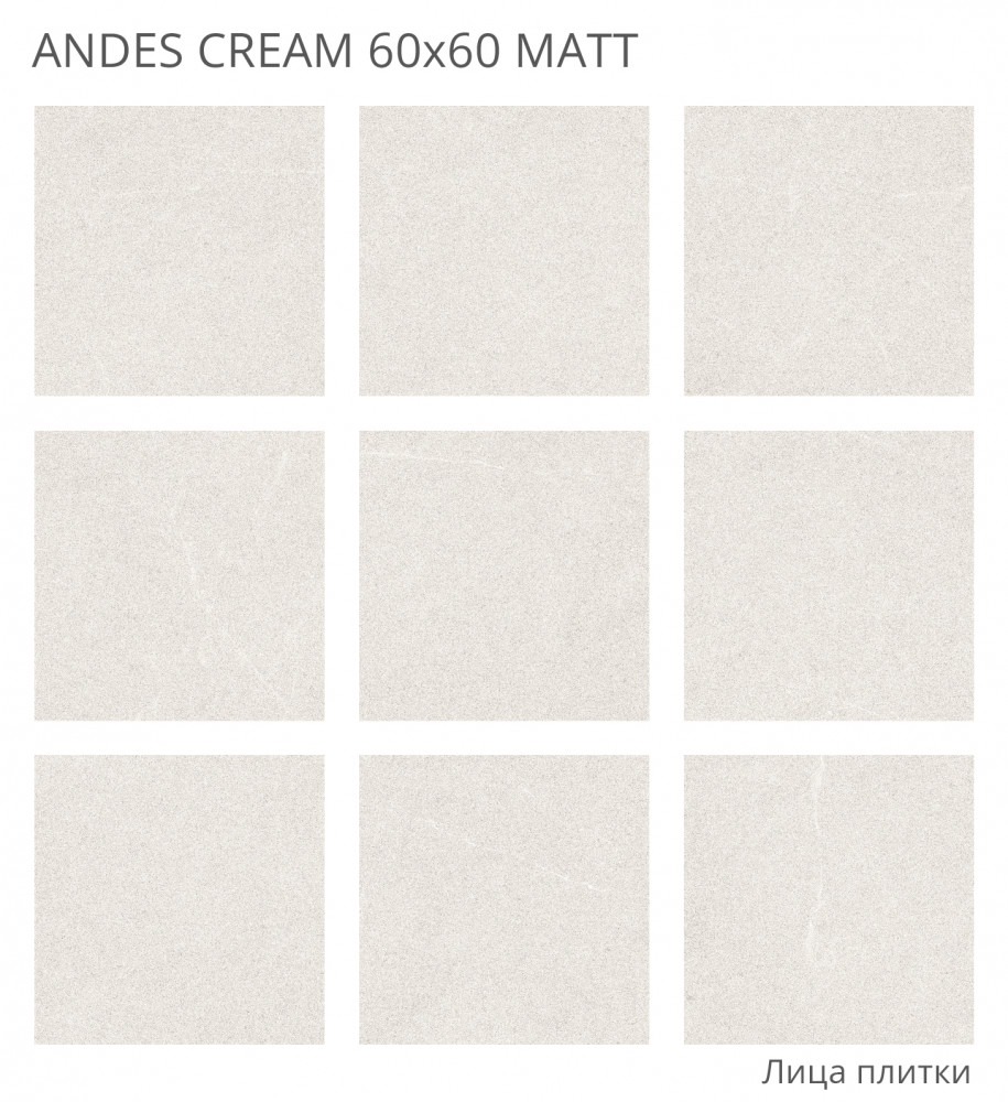 Керамогранит 60x60 8мм Rizzi Andes Cream Matt матовая Staro