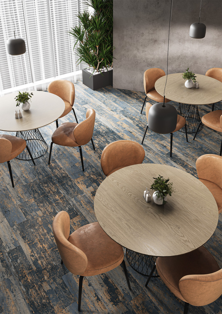 Керамогранит 120x20 9мм Savoy Rust Cobalt Carving матовая Starowood