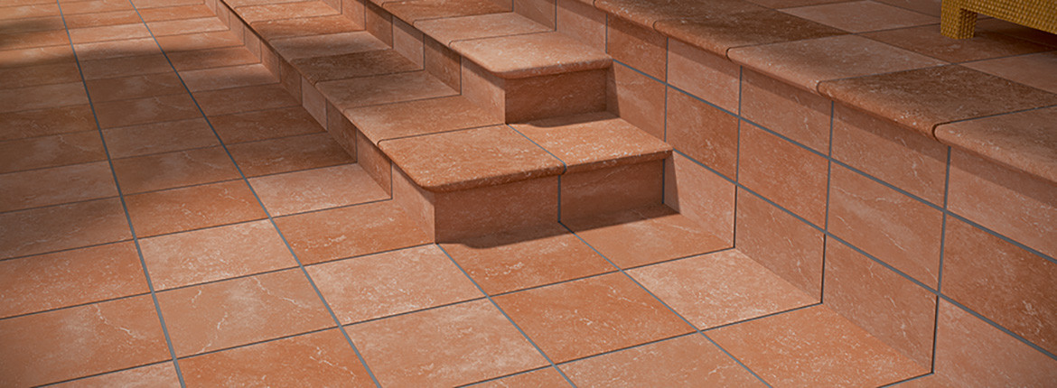 Ступень фронтальная 33x33 14мм Stone Peldano Ocre нескользящая r12 Exagres
