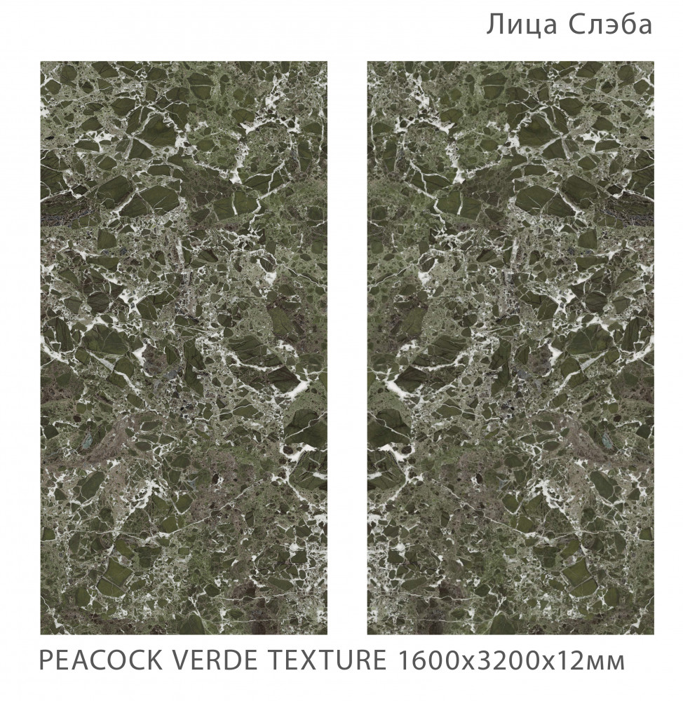 Керамический слэб 320x160 12мм Fullbody Peacock Verde текстурированная Staroslabs
