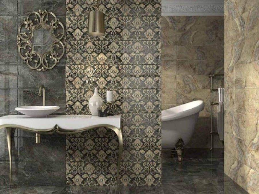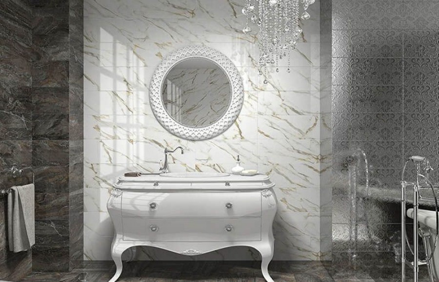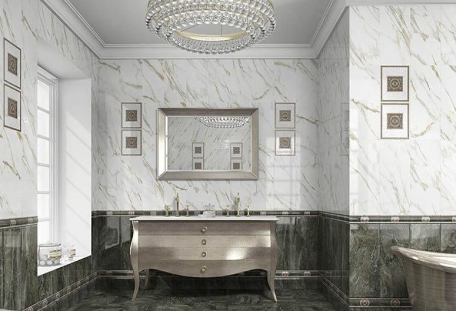 Плитка 58x24 Sublime damasco calacata декор настенный глянцевая серый Unicer