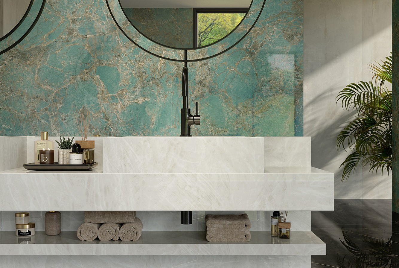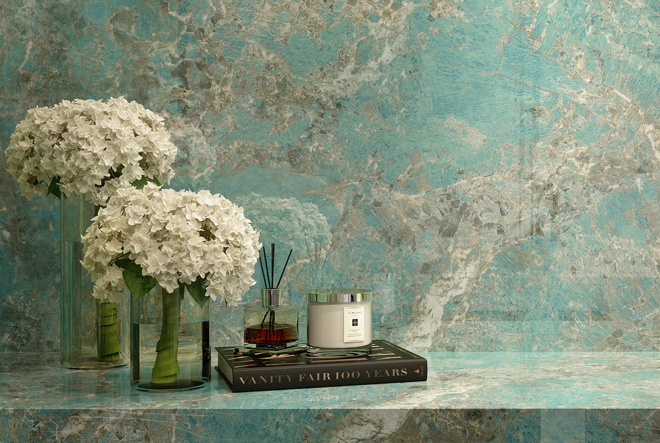 Плитка 120x60 Marvel Amazzonite Lappato Afxs глянцевая бирюзовый мрамор 9мм Atlas Concorde
